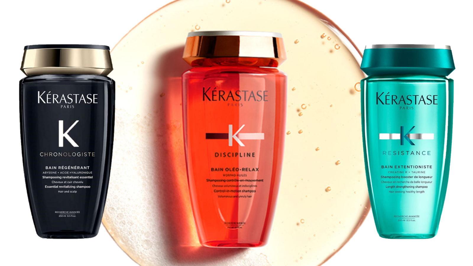 縮毛矯正に特化した製品として、ケラスターゼ バンクロノロジストR、ケラスターゼ バン エクステンショニスト、そしてケラスターゼ バンオレオリラックスの3つのシャンプーが特に注目に値します。