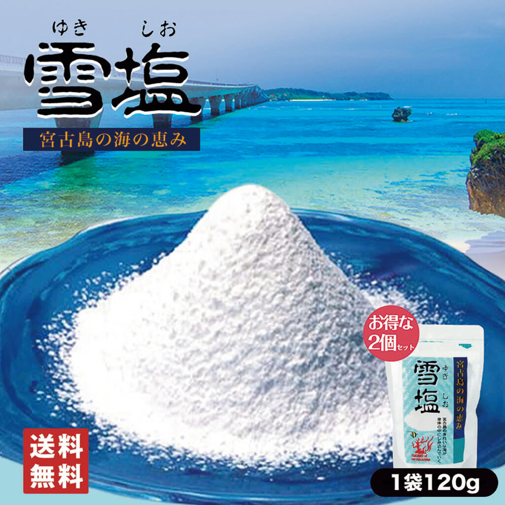 雪塩とは何かと言うと、沖縄県宮古島で作られる天然の塩で、ミネラル豊富な成分が特徴です。