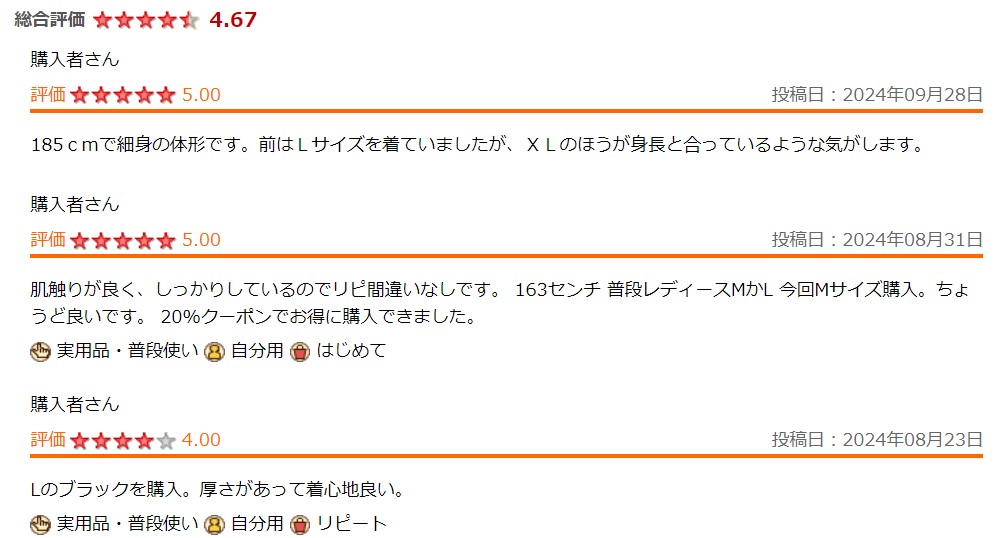 ✅レビューを確認することで、サイズ感や素材を把握できる