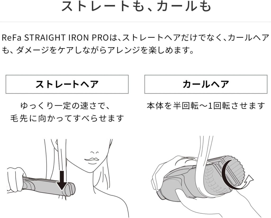 これにより、ストレートもカールも自在に楽しむことができます。
