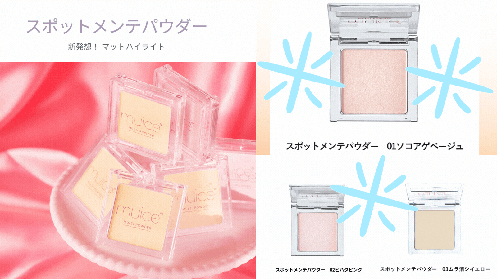 muice スポットメンテパウダーは、クマや赤みをカバーするために開発されたマルチユースのパウダーです。