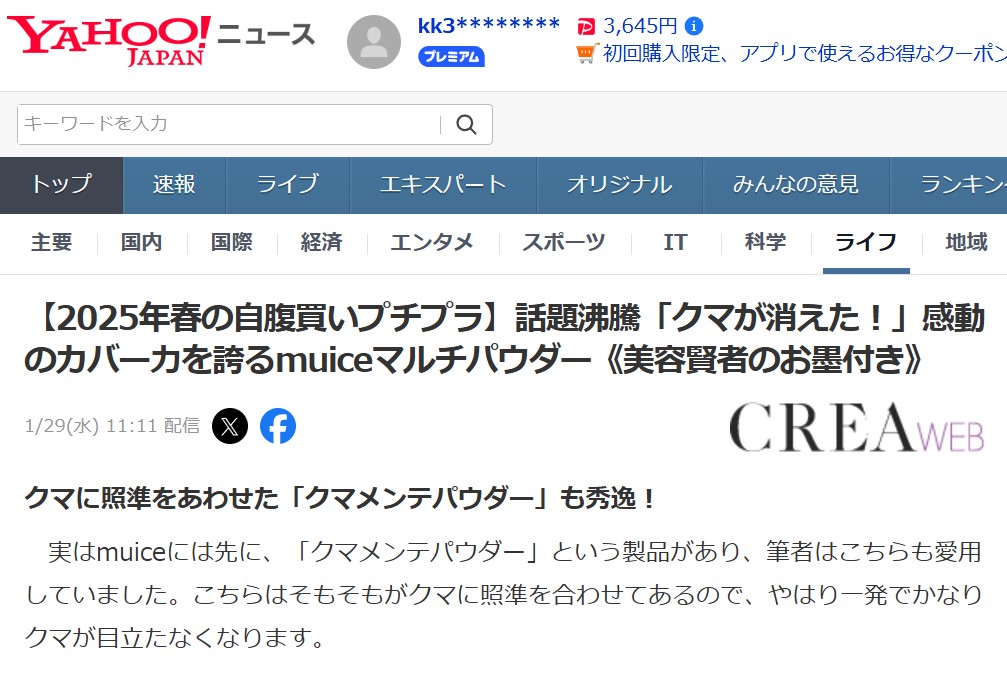 最近、Yahooニュースでの「muiceマルチパウダー」に関する報道がありましたので紹介します。