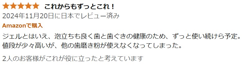 また、使用感に関しても「泡立たないため、しっかりブラッシングできる」「ジェルが歯に密着している感じがする」といった肯定的な意見が多く見られます。