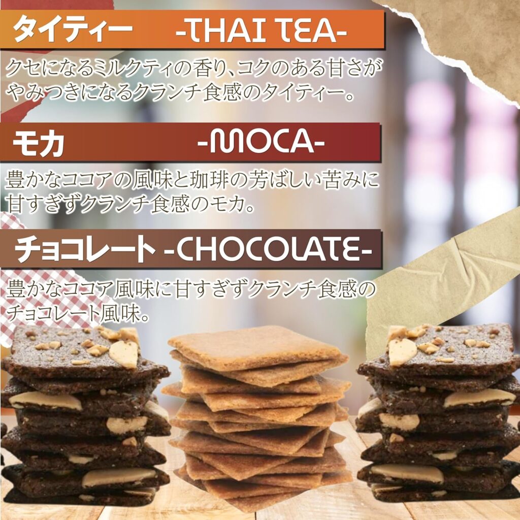 ✅ チョコレート、モカ、タイティーの3種類のフレーバーがある