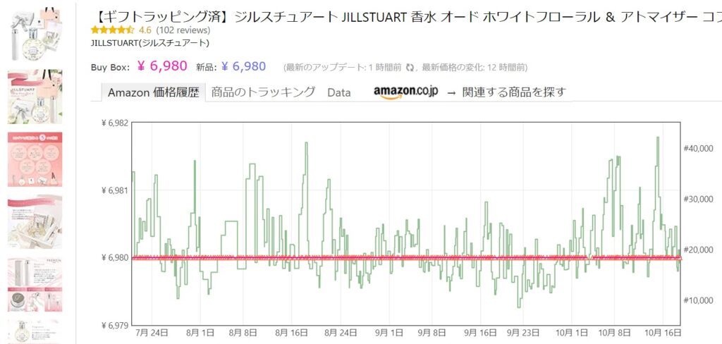 赤いグラフが価格を示しており10月に価格が少し下がった時期にはめちゃくちゃ売れてのが一目瞭然です!こんなプレゼントをもらったら嬉しくないはずがないですよね!?