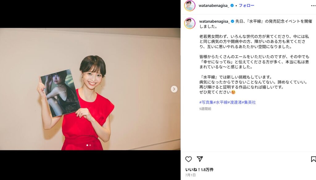 ✅ 渡邊渚の病名は公表されておらず、憶測が飛び交っている