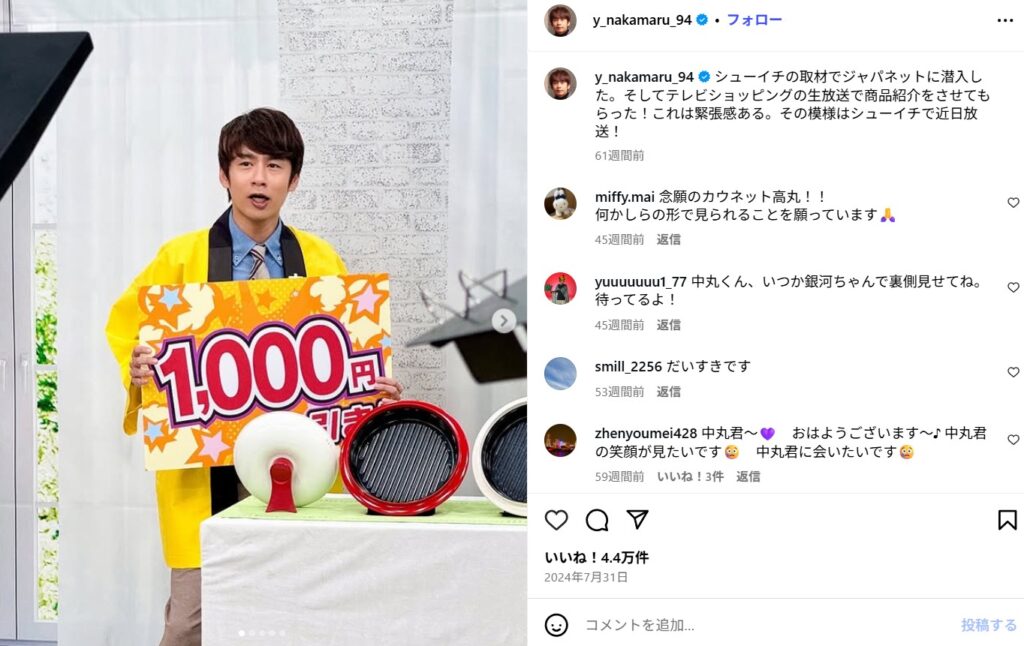 - YouTubeチャンネル:自身の『中丸銀河ちゃんねる』や『よにのちゃんねる』の更新も再開されています。