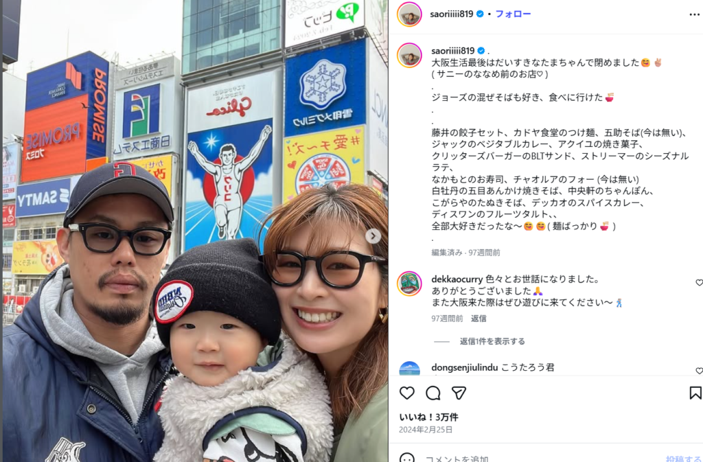 まず、公式に発表された最大の転機は「第一子の誕生と、それに伴う育児への専念」です。2023年2月に長男・煌太郎くんが誕生したことで、夫婦の生活スタイルは劇的に変化しました。朝から晩まで店舗に立ち、接客や経営に追われる日々を送りながら、異郷の地である大阪で幼い子供を育てることは、体力面でも精神面でも物理的な限界があったと推測されます。